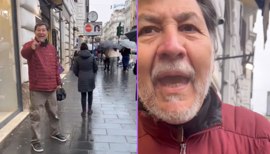Aunque el clip circula con diversas versiones, lo que sí se escucha es la voz del senador dominando la escena, confrontando a quien lo grabó mientras caminaba por el centro histórico de Roma.